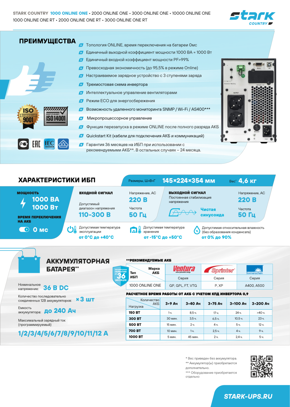 Предложение действует при покупке ИБП в комплекте с рекомендуемыми специалистами STARK COUNTRY аккумуляторными батареями