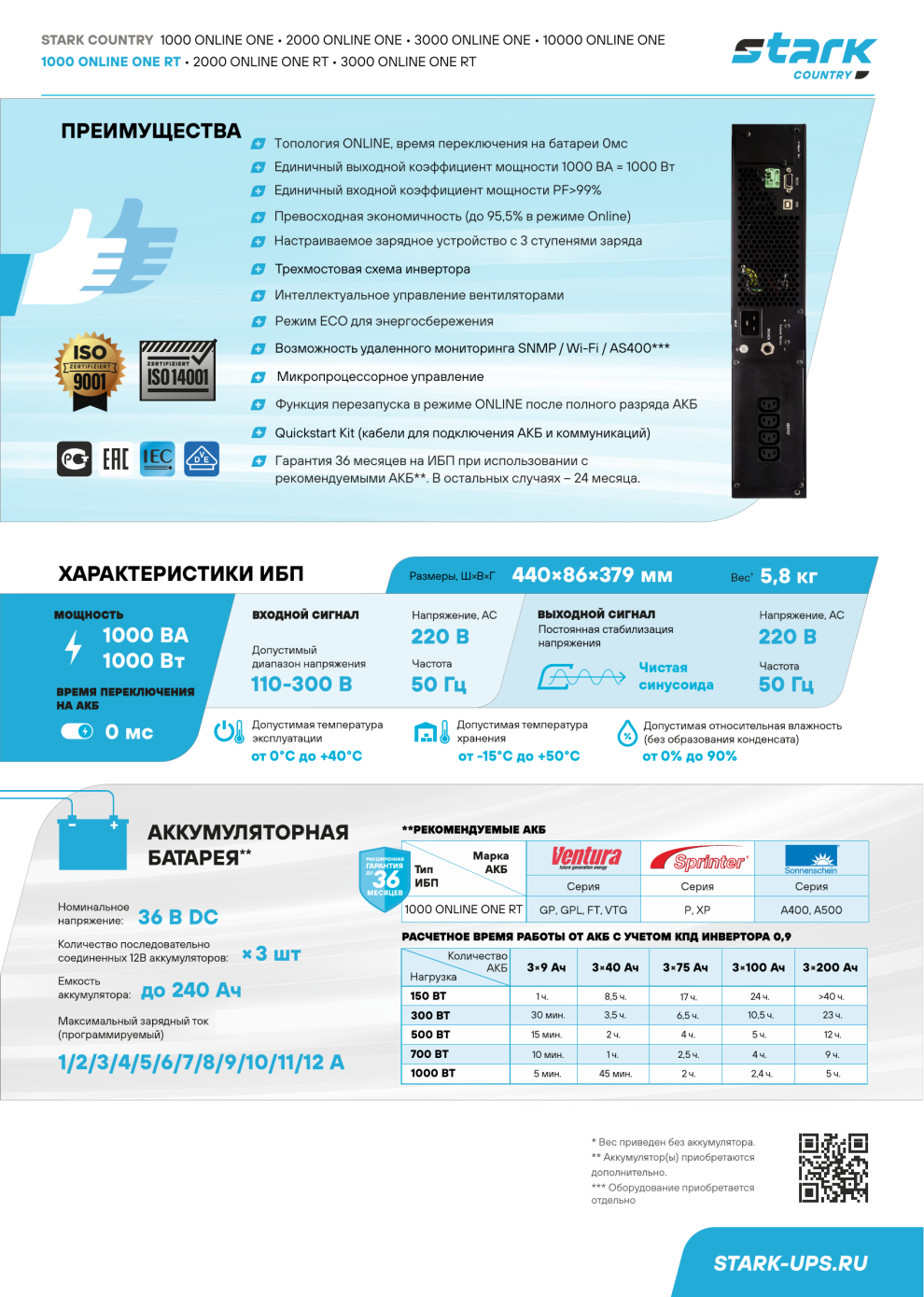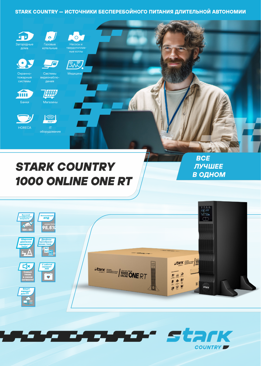 Важно знать, что все ИБП бренда STARK COUNTRY созданы для работы с внешними батареями.