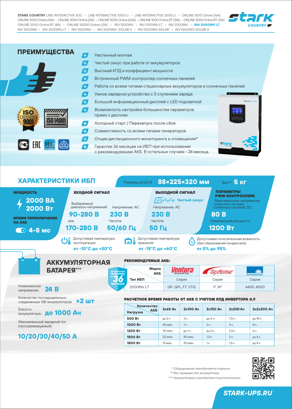 - Встроенный контроллер солнечных панелей (1200 Вт)