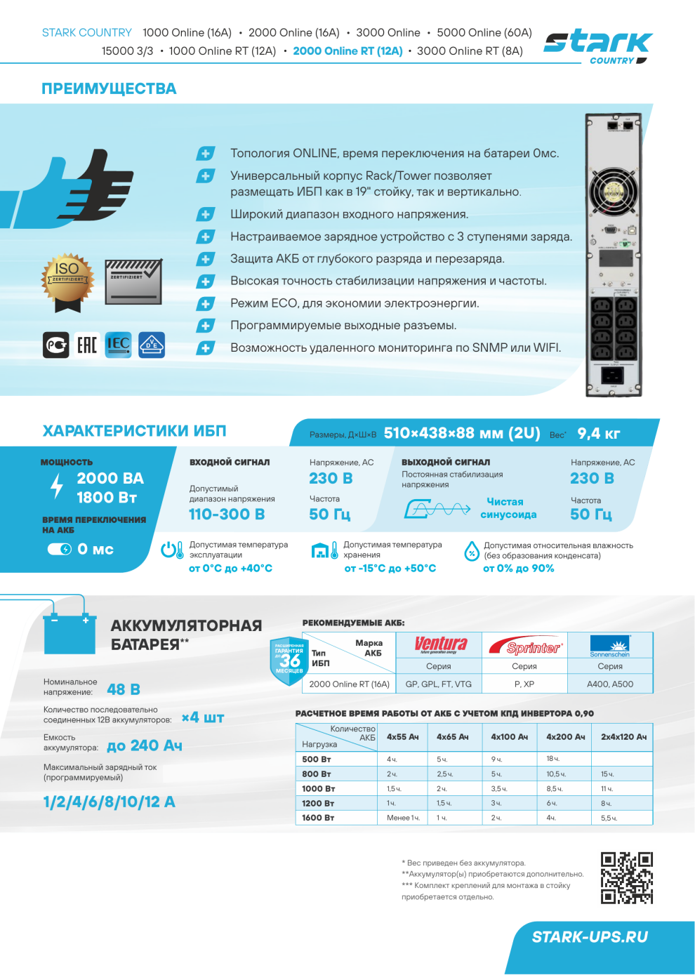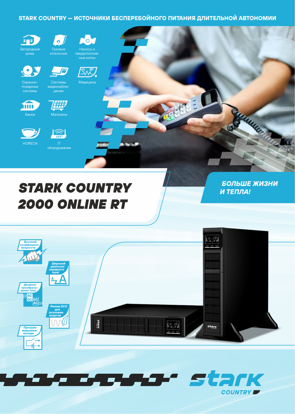 Важно знать, что все ИБП бренда STARK COUNTRY созданы для работы с внешними батареями.