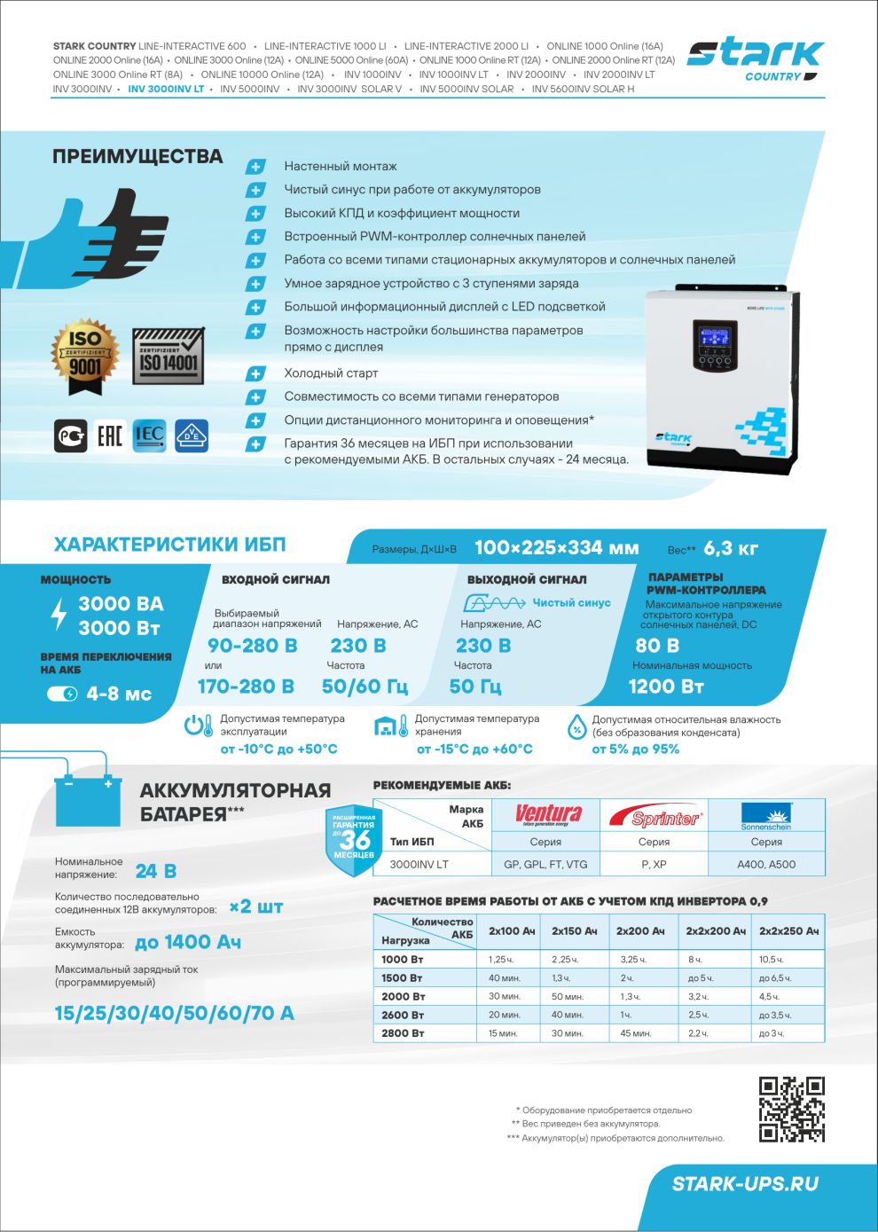 - Максимальный зарядный ток от PV, А: 20 / 30 / 40 / 50 / 60 / 70