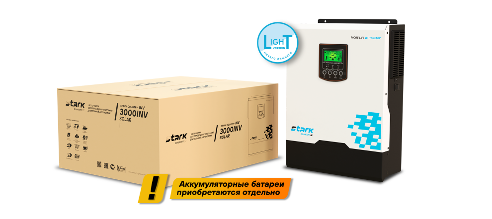 - Встроенный MPPT контроллер солнечных панелей (3000 Вт)