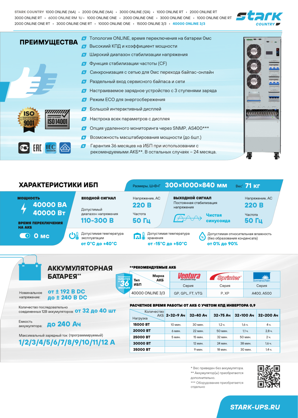 Важно знать, что все ИБП бренда STARK COUNTRY созданы для работы с внешними батареями.