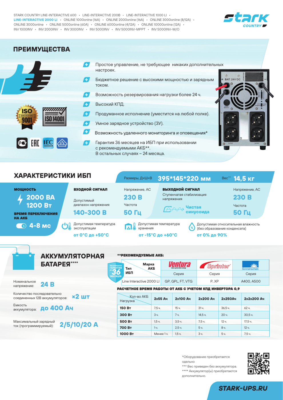- Защита от перегрузки, разряда и перезаряда АКБ
